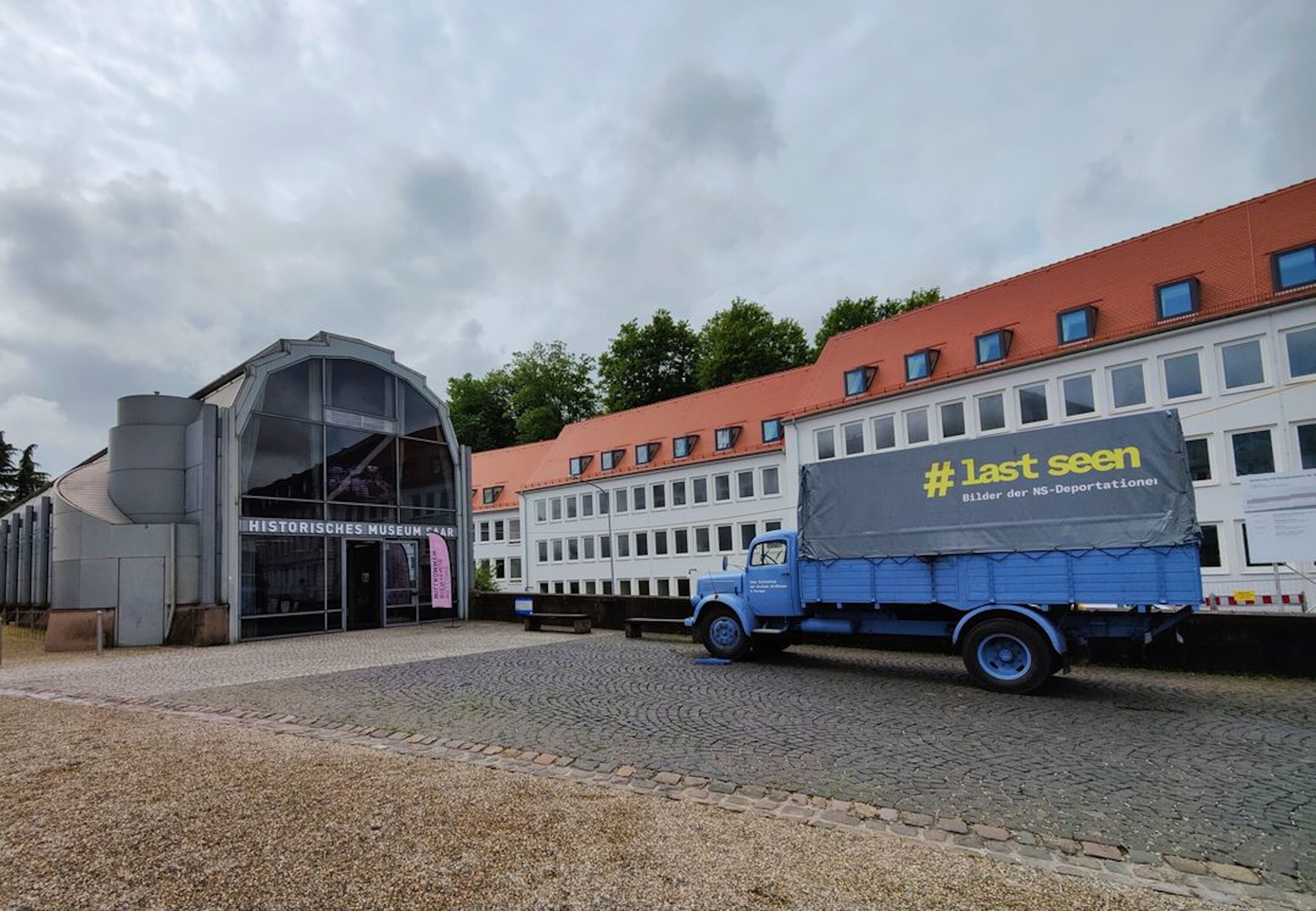 Im Zentrum der Präsentation #LastSeen stehen die Fotos von Deportationen aus dem Deutschen Reich zwischen 1938 und 1945. Die meisten der Männer, Frauen und Kinder auf den Bildern sind ein letztes Mal zu sehen – bevor die Nationalsozialisten sie in die Vernichtungslager brachten und ermordeten. Der für die Ausstellung genutzte LKW aus den 1950er Jahren ähnelt jenen Fahrzeugen, die für den Transport von Verfolgten zu Sammellagern und Bahnhöfen genutzt wurden.