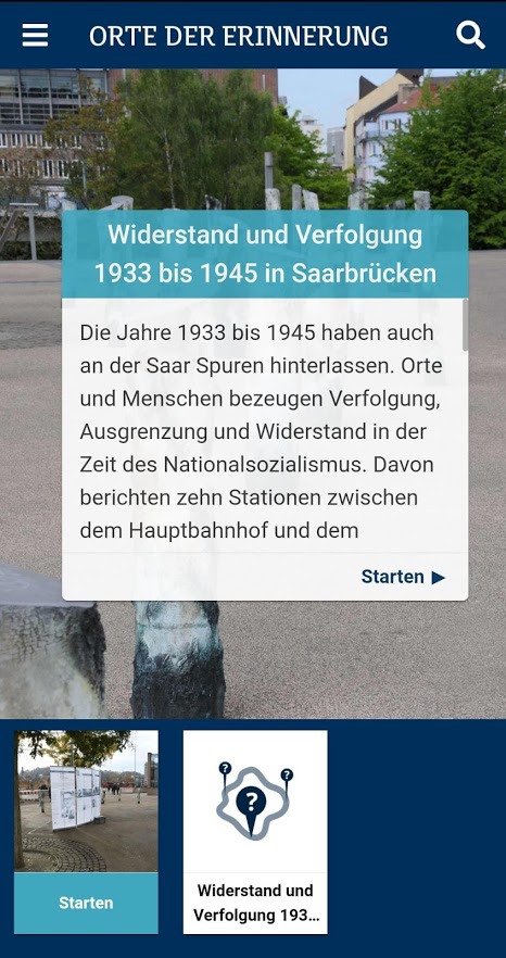 Mit der App „Orte der Erinnerung“ auf Spurensuche im heutigen Saarbrücken gehen und dabei teilweise vergesse Orte der Verfolgung und Ausgrenzung, aber auch des Widerstands in der NS-Zeit entdecken.
