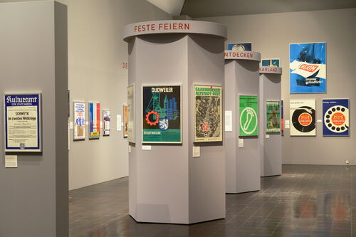 Mit einer Auswahl von 130 saarländischen Plakaten aus den Jahren 1960 bis 1979 beleuchtete die neue Sonderausstellung des Historischen Museums Saar schlaglichtartig die politische, wirtschaftliche und kulturelle Annäherung des Saarlandes an die Bundesrepublik und die Öffnung nach außen.