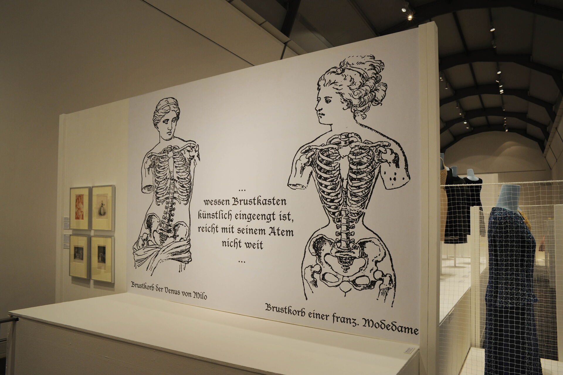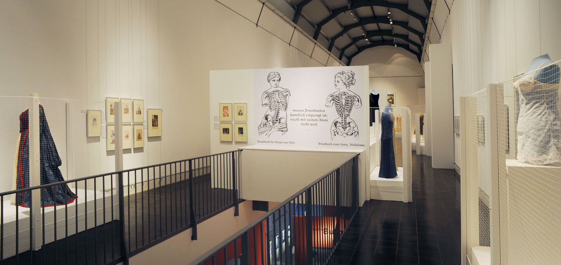 Mit 60 originalen Kleidungsstücken für drunter und drüber sowie Fotos, Plakaten, Gemälden und Karikaturen zeichnete die Ausstellung die Entwicklung der Mode und den Wandel der Schönheitsideale und Körpersilhouetten in Europa vom 18. Jahrhundert bis in die Gegenwart nach.